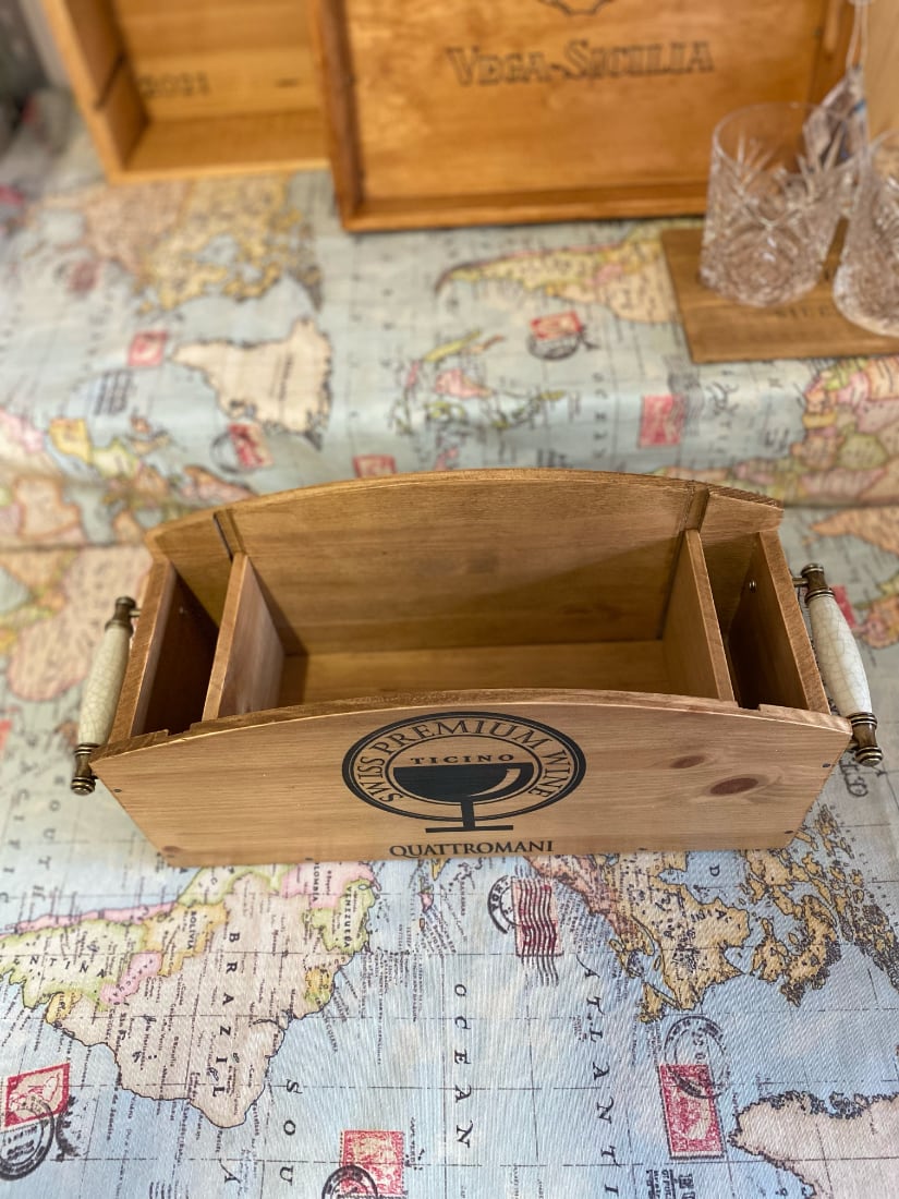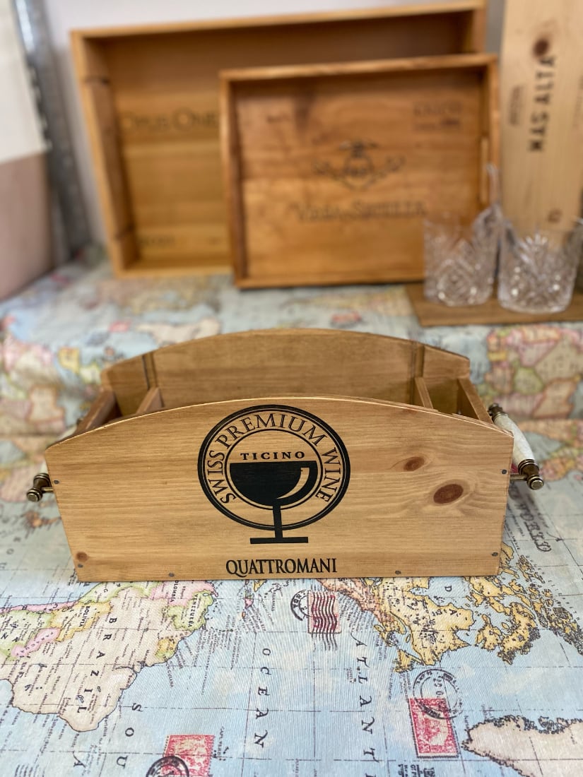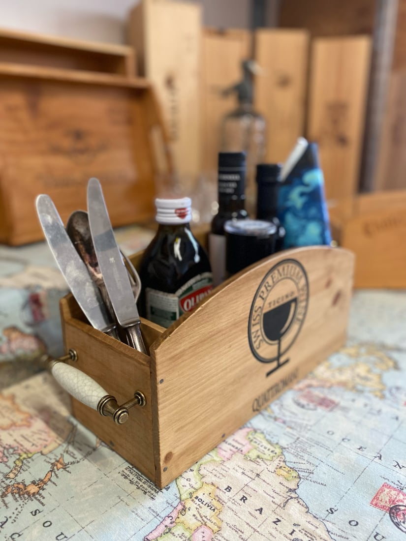 Menage Holzkiste aus Quattromani Weinkisten gefertigt
